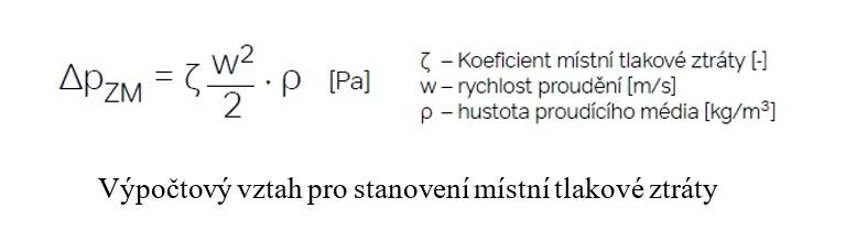 Obecný výpočetní vztah pro stanovení konkrétní hodnoty dílčí tlakové ztráty pro jednotlivé tvarovky, resp. pro jednotlivé místní odpory je následjící: