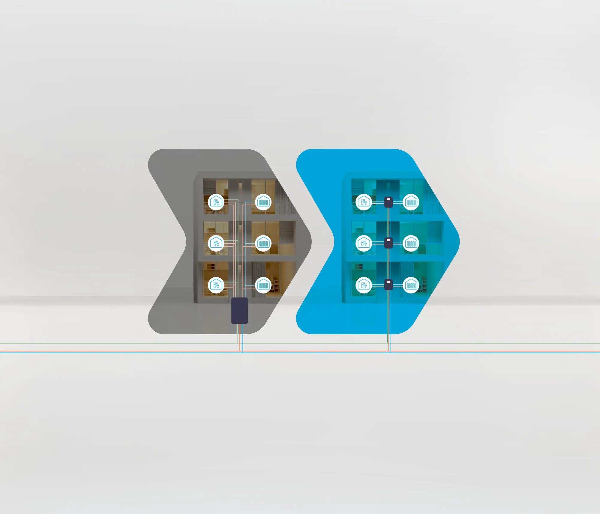 Hvorfor vælge én stor fælles installation, når hver bolig kan få sin egen intelligente varmeunit?Calefa II understøtter 3‑rørsløsningen og gør installationen både enklere og mere fleksibel.Den decentrale opbygning giver beboerne reel kontrol over både varme og varmt vand, mens den intelligente automatik sikrer et lavere – og mere stabilt – energiforbrug i hele ejendommen.Hvis der opstår en fejl, rammer den kun den enkelte unit. Resten af bygningen fortsætter som normalt, og eventuelle problemer kan løses hurtigt og effektivt.