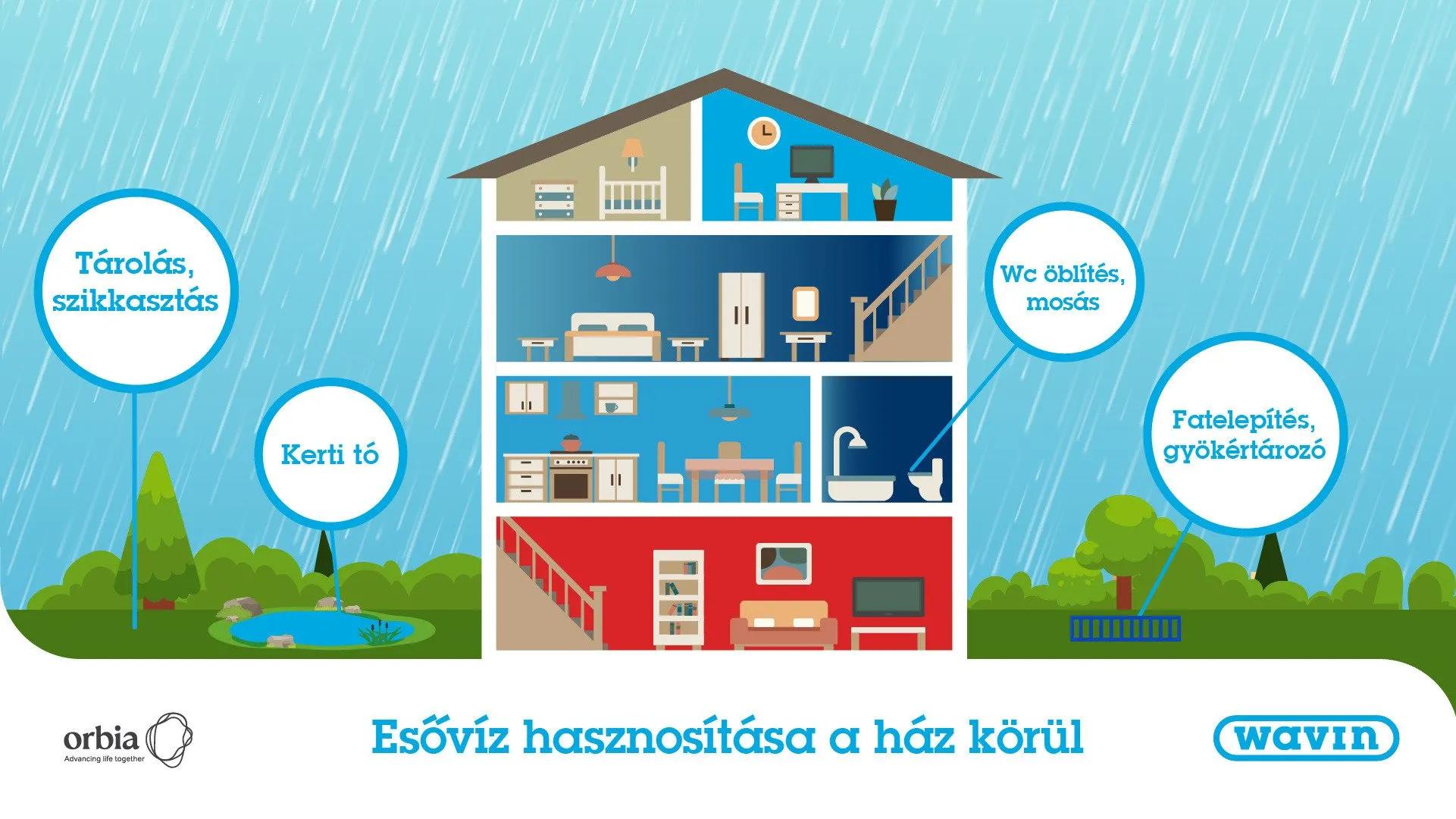 Alakítsuk ki házi vízrendszerünket úgy, hogy az összegyűjtött esővizet a locsolás mellett más célokra is felhasználhassuk, legyen ez például mosás, vagy WC öblítés. Ne feledjük, ilyenkor egy elkülönített vezetékrendszer szükséges, hogy a csapadékvíz ne keveredjen az ivóvízzel. A nem hasznosított esővíz a szennyvízzel sem keveredhet, hiszen az könnyen túlterhelné a csatornahálózatot. Jól tervezett esővíz hasznosítással akár felére csökkenthetjük az otthoni vezetékes ivóvíz mennyiségét!