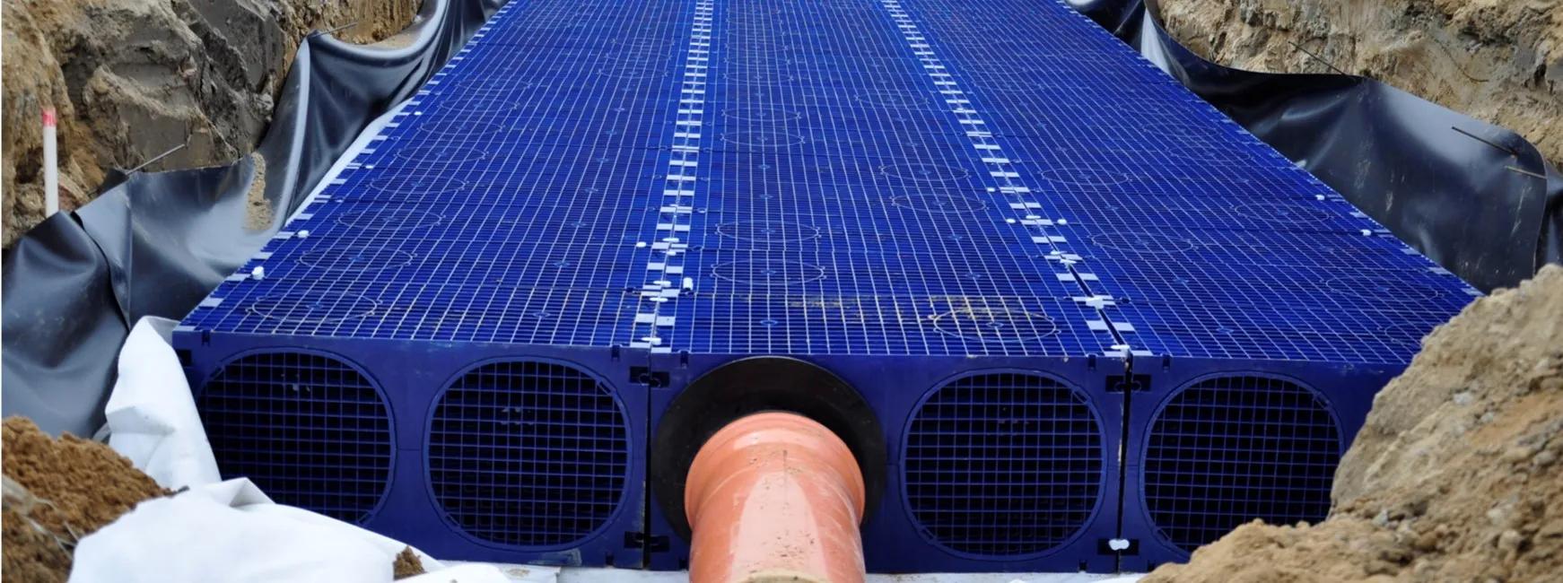 Montavimo darbai turi būti atliekami laikantis statybos taisyklių pagal PN-EN 1610 ir PN-EN 1046 bei galiojančių darbo saugos taisyklių. Tranšėjos dydis priklauso nuo: rezervuaro dydžio, įtekėjimo jungties ir rezervuaro dengiamojo sluoksnio gylio, išlyginamojo pagrindo sluoksnio tipo ir storio, gruntinio vandens lygio bei kitų sąlygų, pvz., kelių eismo keliamos apkrovos. Modulinių rezervuarų sistemą galima įrengti vietose, kuriose vyksta kelių eismas. Dengiamasis sluoksnis priklausys nuo dėžių tipo, pvz., dėžių „Wavin Q-BB“ atveju, esant SLW 60 apkrovai, jo storis turi siekti mažiausiai 0,7 m. Vietose be kelių eismo dengiamojo sluoksnio storis turi būti bent 0,3 m. Tranšėjos plotis turi būti didesnis už rezervuaro plotį tiek, kiek būtų pakankama darbo įrankiams naudoti – įprastai 400–500 mm iš kiekvienos pusės. Tranšėjos dugnas turi būti lygus, be aštrių briaunų ir stačių slenksčių. Daugeliu atvejų apsieinama be nuolydžio. Kai tranšėją reikia pagilinti dėl akmenų, grindinio trinkelių ar kietų plokščių, rekomenduojama, kad pakeista medžiaga būtų tokia pati kaip ir išlyginamojo pagrindo medžiaga.