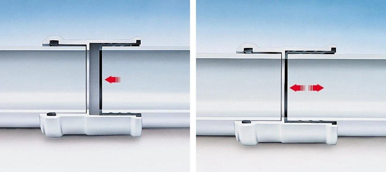 Łączone elementy ustawiamy prosto względem siebie w jednej linii. Wciskamy bosy koniec rury lub złączki całkowicie do kielicha. W przypadku wkładania rury tworzywowej o długości 2m lub dłuższej oznaczamy bosy koniec rury przy czole kielicha, a następnie cofamy ją o 10mm, aby pozostawić miejsce na jej wydłużenie wskutek rozszerzalności cieplnej. Brak szczeliny może skutkować naporem bosego końca rury na karb kielicha pod wpływem przepływu gorących ścieków i w konsekwencji awarię (pęknięcie kielicha i wyciek). Po wykonaniu dalszych prac montażowych przeprowadzamy ponowną kontrolę, aby upewnić się, czy wyznaczona szczelina dylatacyjna została zachowana.