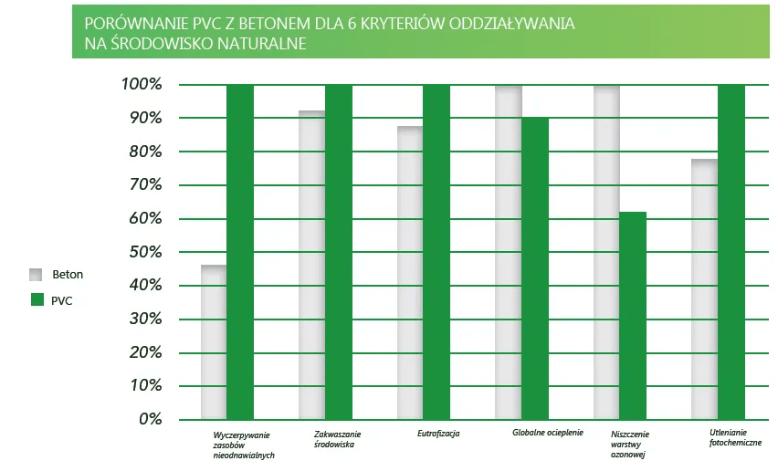 Ocena systemów z tworzyw sztucznych w tym zakresie jest bardzo korzystna. W porównywalnych warunkach systemy z tworzyw sztucznych wykazują oddziaływanie na środowisko na podobnym poziomie z systemami tradycyjnymi, uchodzącymi za bardziej przyjazne środowisku.
